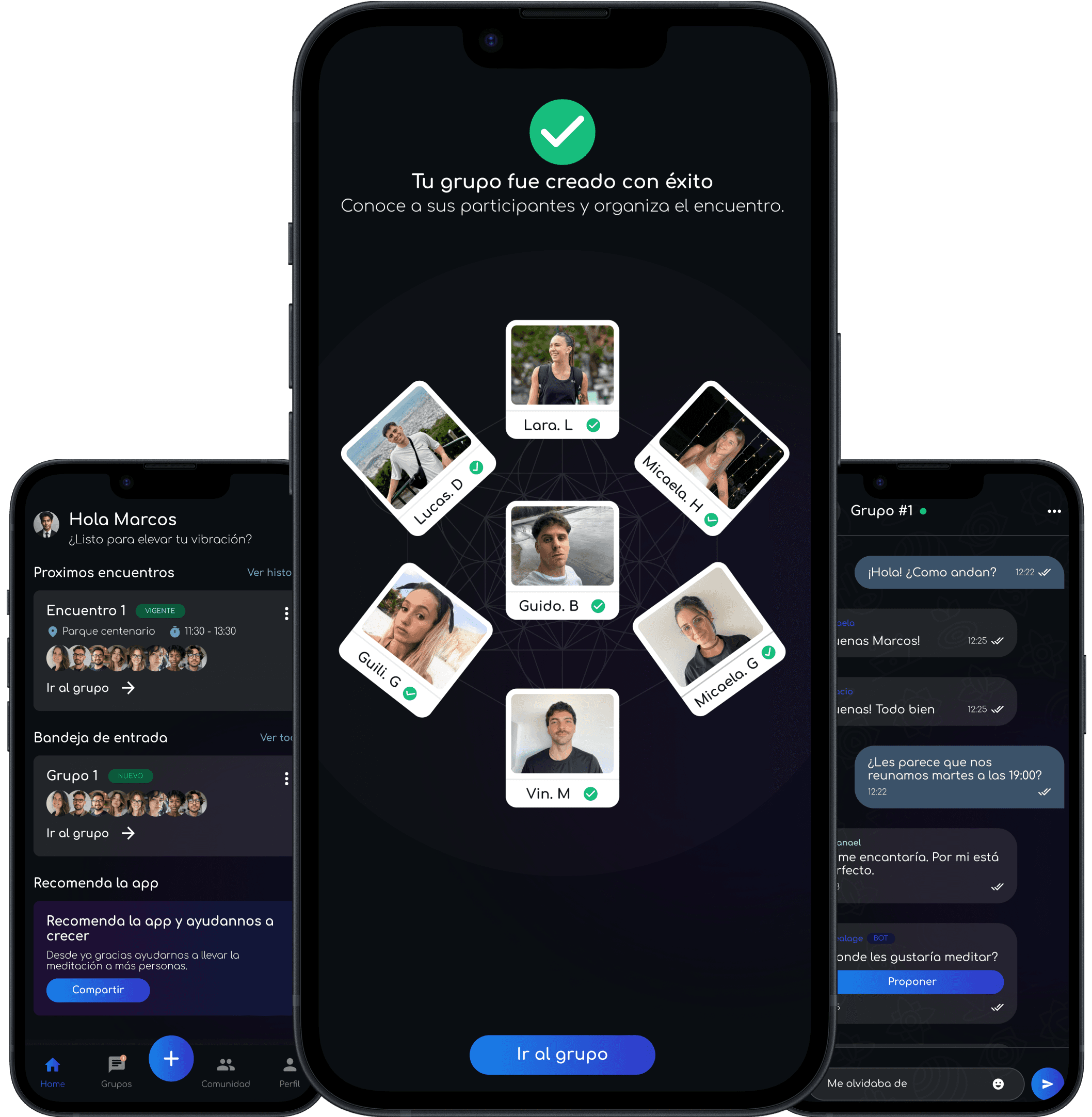 Conectá con personas reales para meditar en grupo, presencialmente y sin complicaciones.